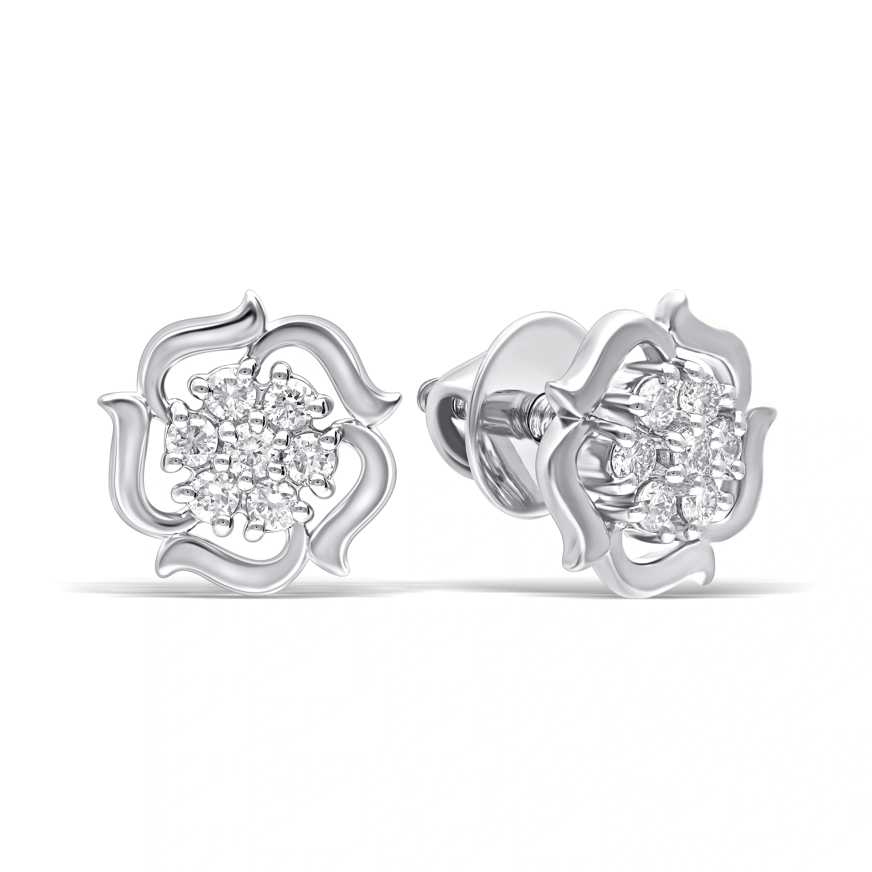 Elevate your look with these elegant gold stud earrings, featuring lab-grown diamonds in a floral arrangement. The durable post backs ensure long-lasting comfort, making them a timeless, eco-conscious choice for any occasion.